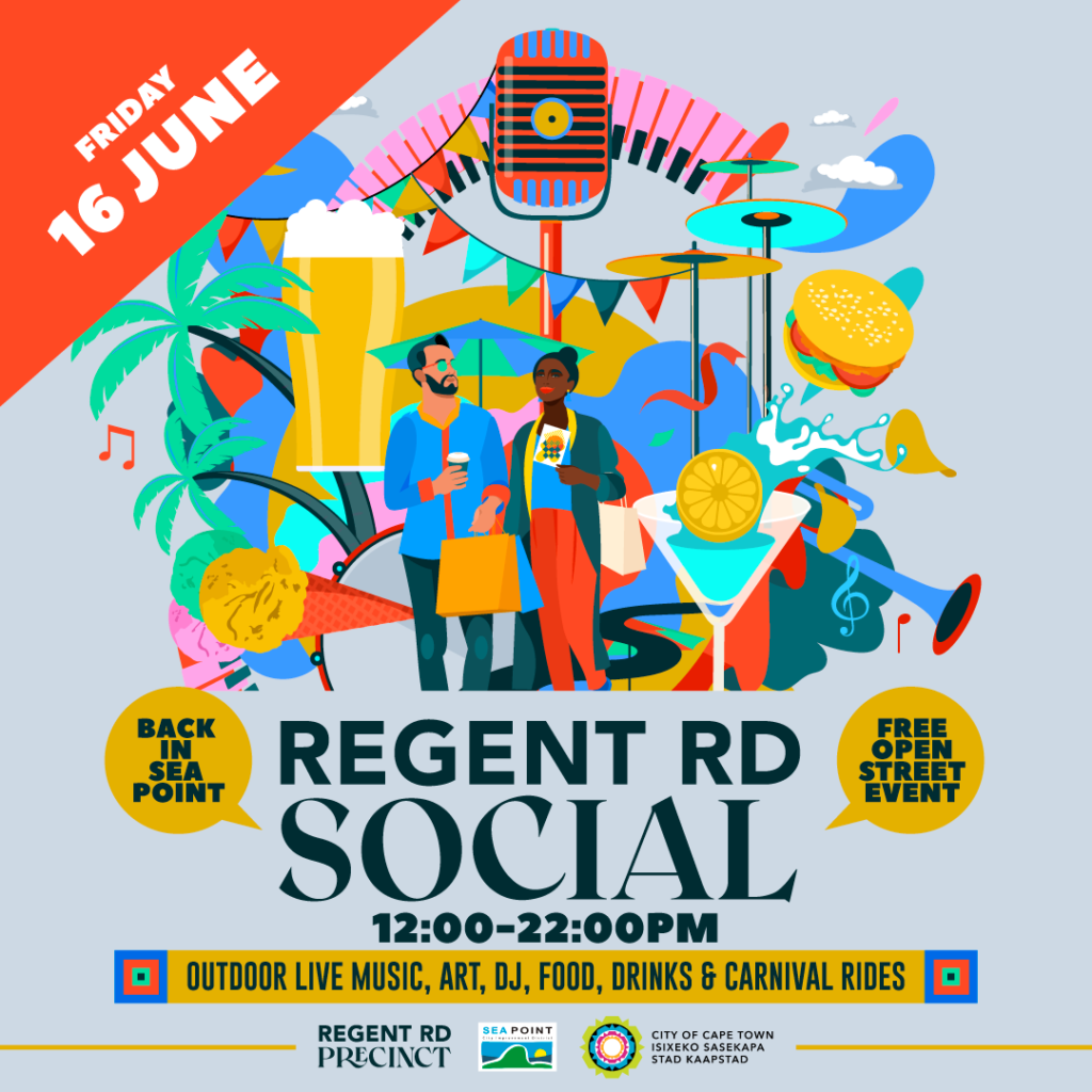 Producer of the Regent Rd Social Bi-Annual event. The main road of Sea Point, Cape Town is closed for traffic and comes to life with outdoor dining, bars, live music stages, interactive art and family activities. The event is hosted with City of Cape Town and attracts over 10 000 per event